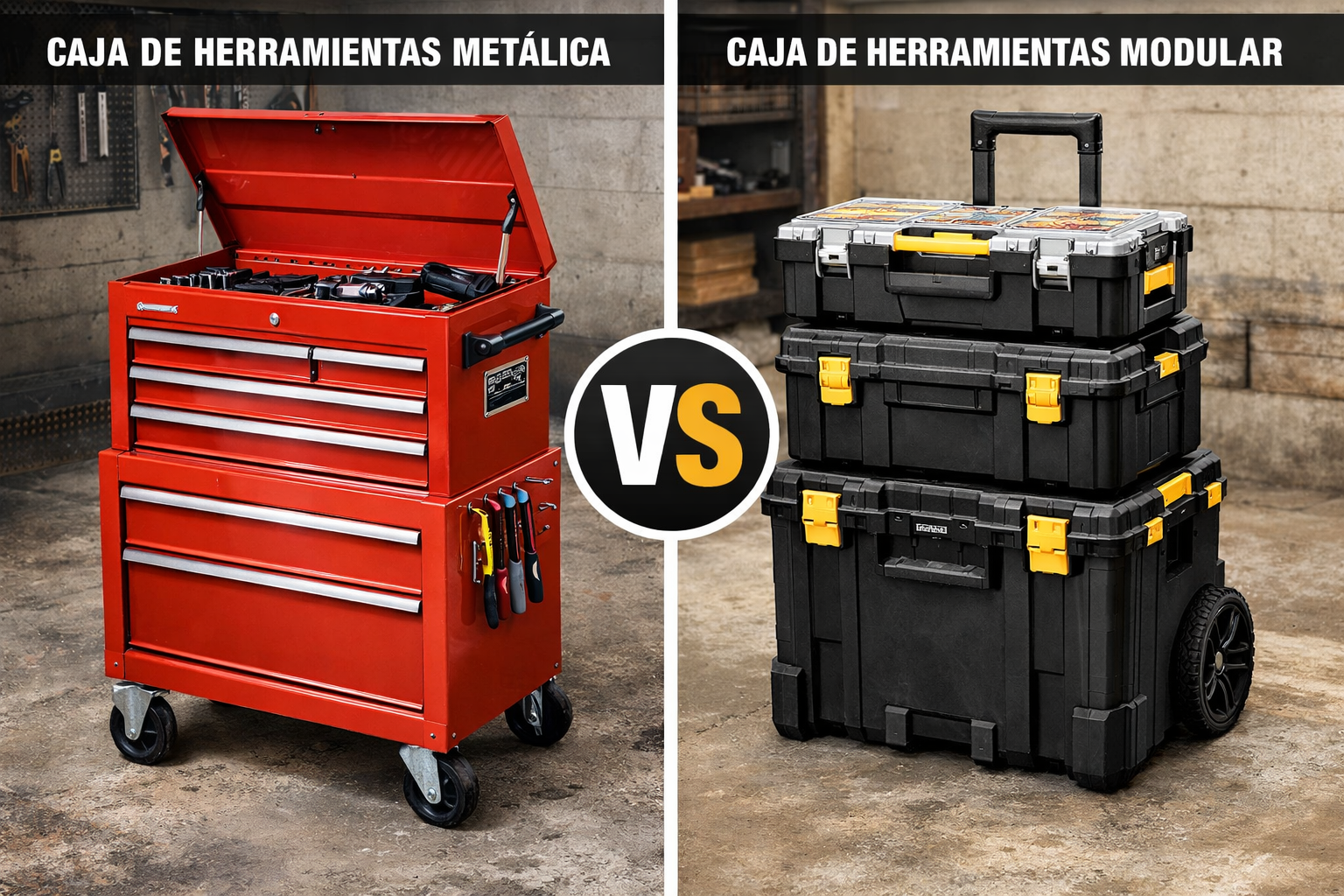 Si vas de obra en obra, busca una caja de herramientas con ruedas. Si tu taller es fijo, una caja de pared o un carro metálico son eternos.